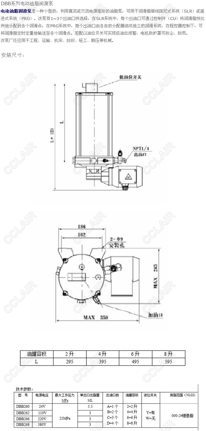 DBB260,DBB262,DBB266,DBB268,电动油脂润滑泵
