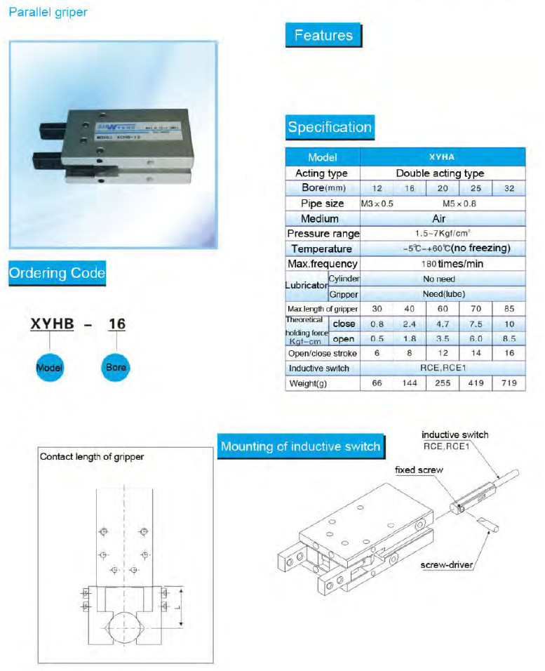 XYHB-12,XYHB-16,XYHB-20,XYHB-25,XYHB-32,Shinya平行爪缸