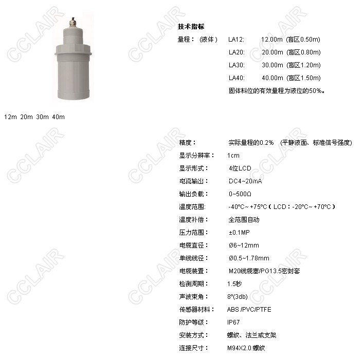 LA12,LA20,LA30,LA40,大量程超声波探头