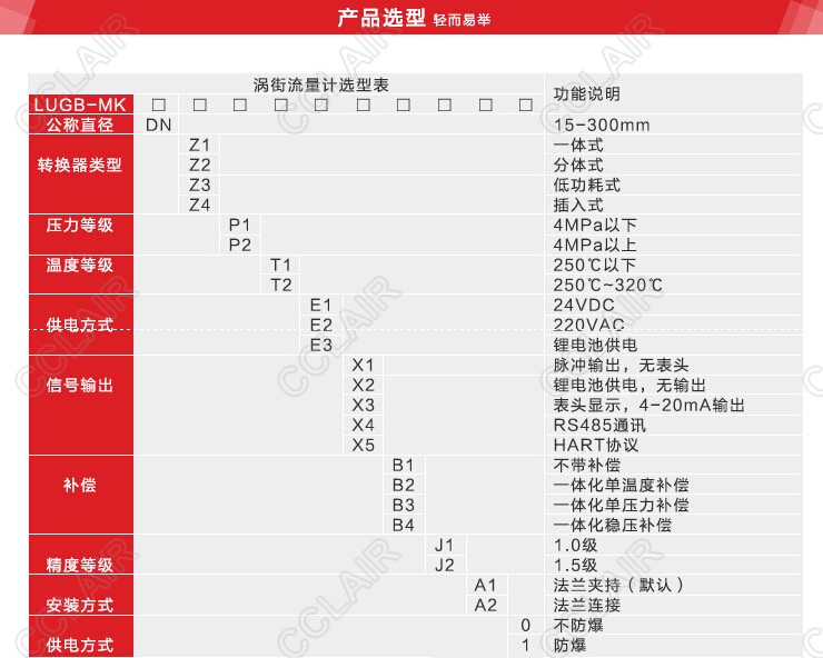 LUGB-MK-DN15-Z1-P1-T1-E1,LUGB-MK-DN300-Z4-P2-T2-E3,MIK-LUGB涡街流量计