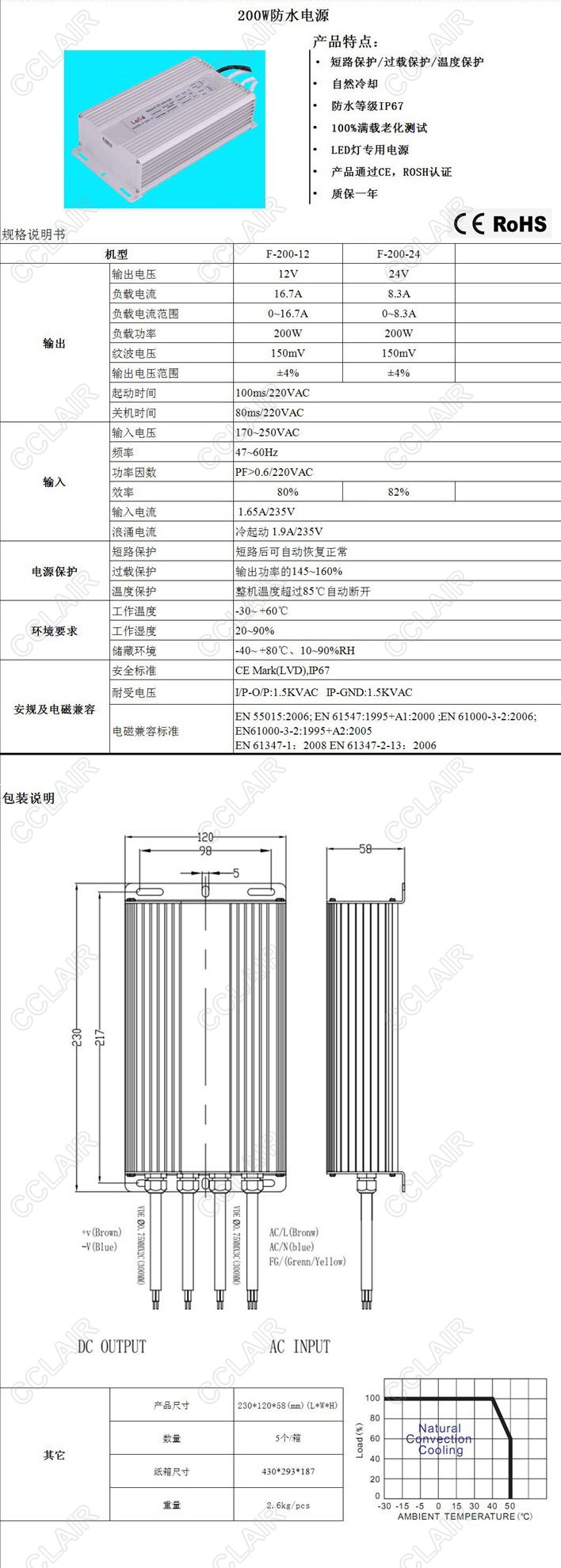 F-200-12,F-200-24,F-200,铝壳防水电源