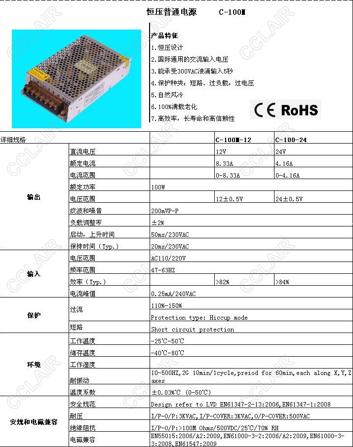 C-100M-12,C-100M-24,C-100M,恒压普通电源