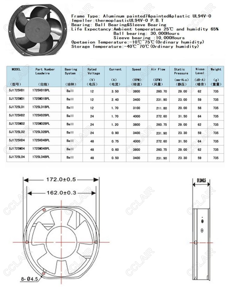 SJ1725HD1,SJ1725MD1,SJ1725LD1,SJ1725HD2,SJ1725MD2,SJ1725LD2,SJ1725,SANJI DC轴流风机