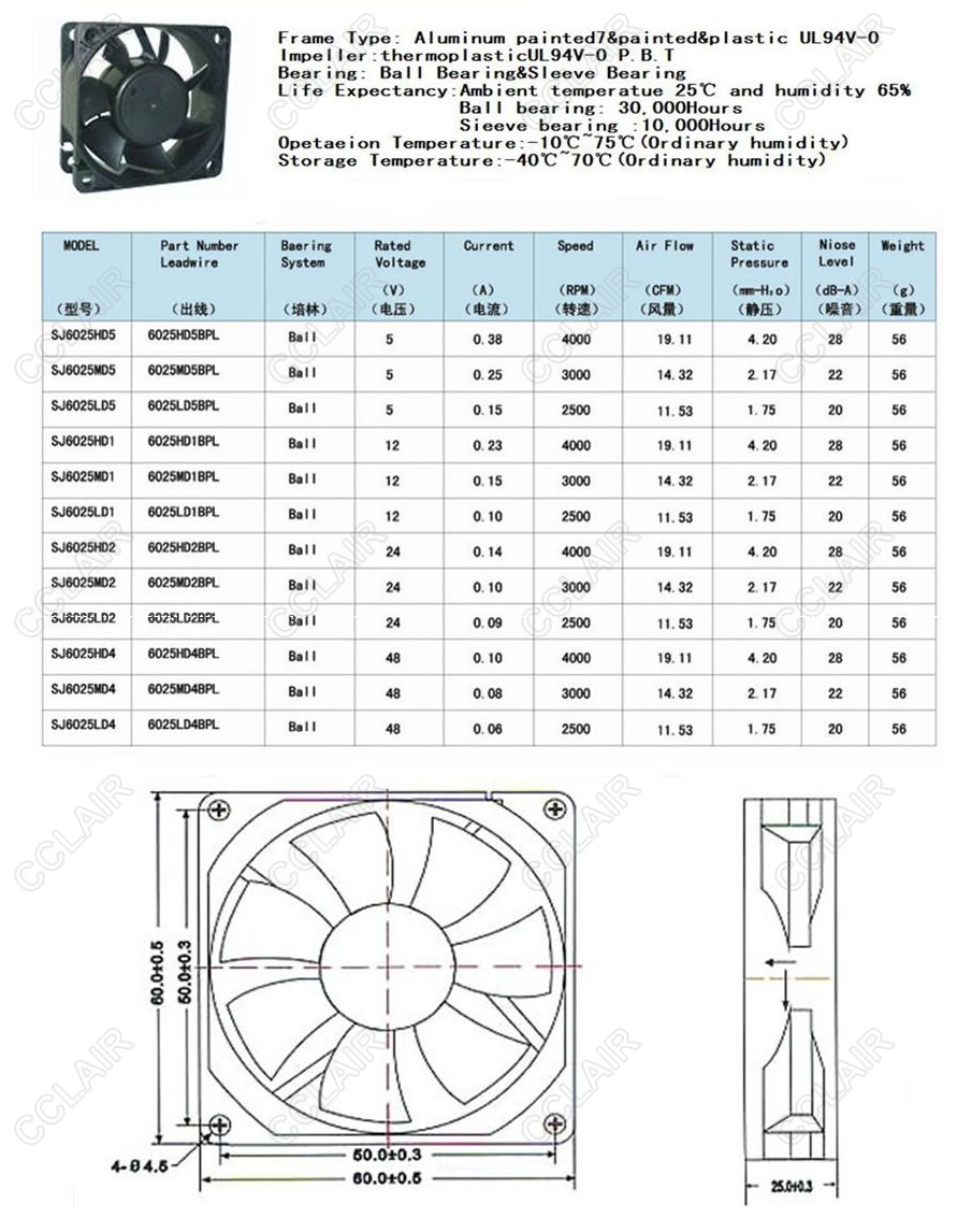 SJ6025HD5,SJ6025MD5,SJ6025LD5,SJ6025HD1,SJ6025MD1,SJ6025LD1,SJ6025,SANJI DC轴流风机