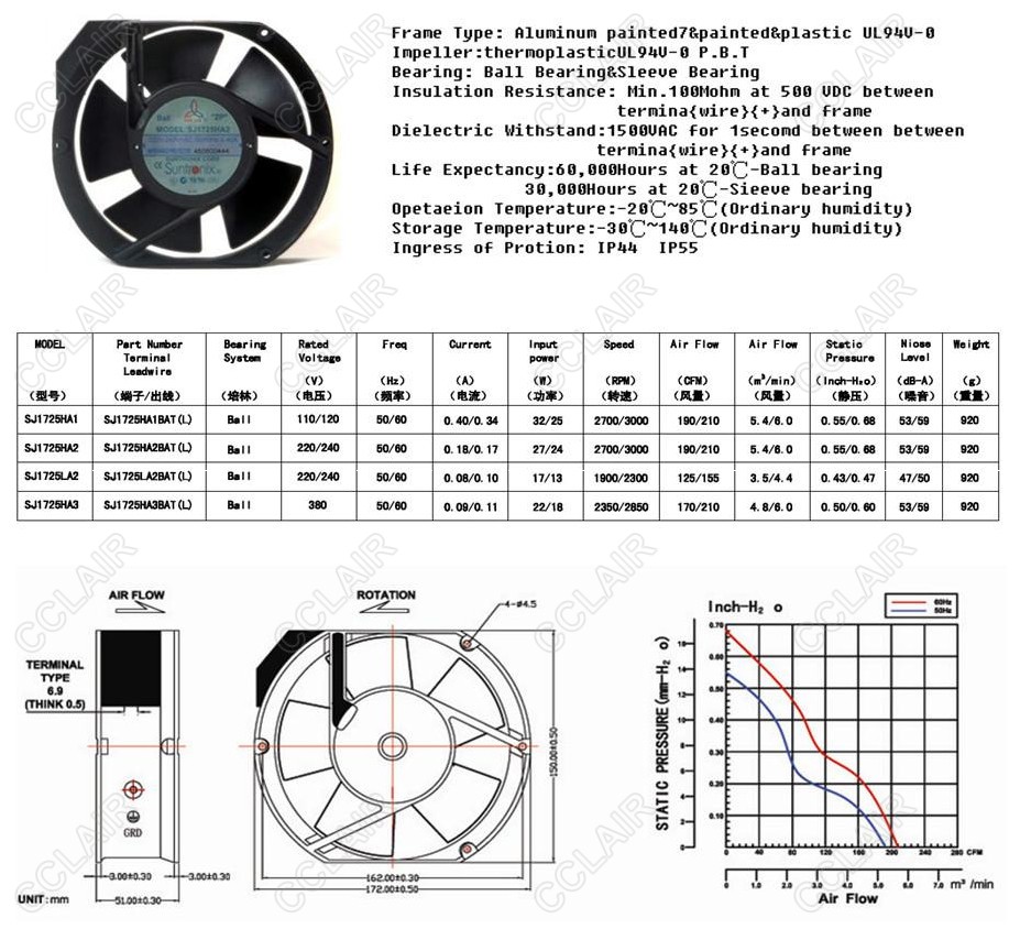 SJ1725HA1,SJ1725HA2,SJ1725LA2,SJ1725HA3,SANJU 轴流风机