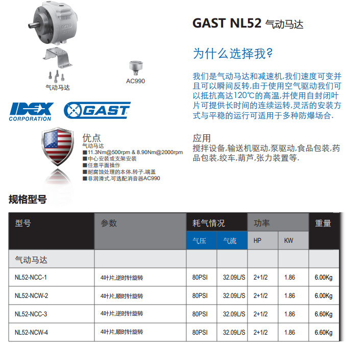 NL52-NCC-1,NL52-NCW-2,NL52-NCC-3,NL52-NCW-4,气动马达