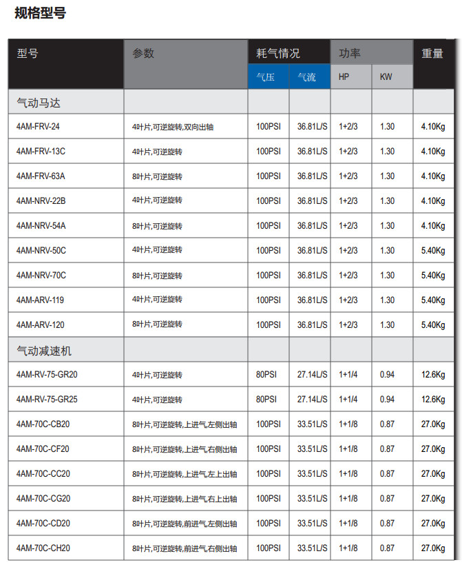 4AM-FRV-24,4AM-FRV-13C,4AM-FRV-63A,4AM-NRV-22B,4AM-NRV-54A,气动马达