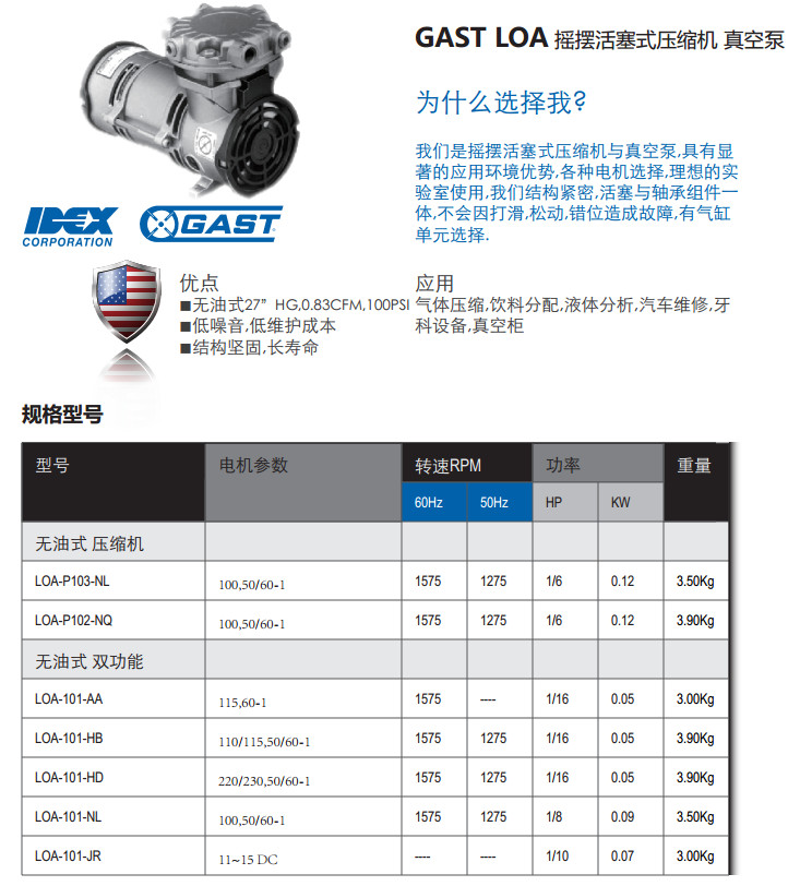 LOA-P103-NL,LOA-P102-NQ,LOA-101-AA,LOA-101-HB,LOA-101-HD,摇摆活塞式压缩机/真空泵