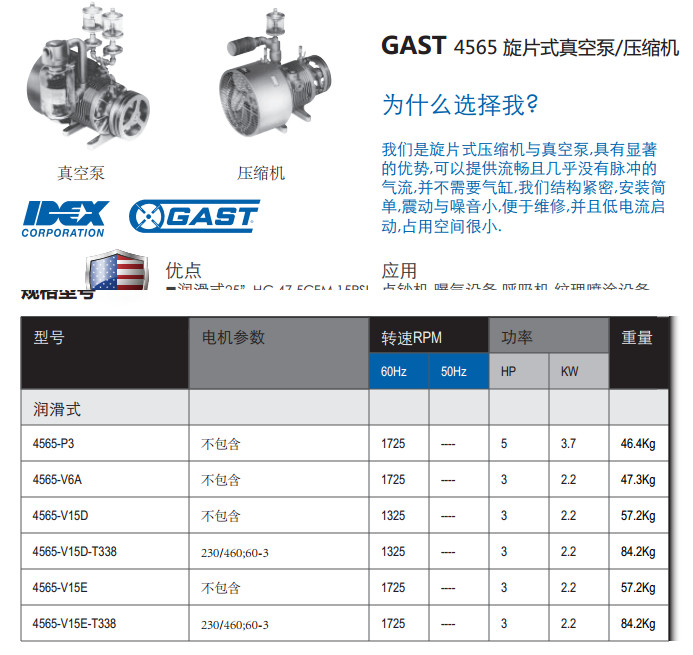 4565-P3,4565-V6A,4565-V15D,4565-V15D-T338,4565-V15E,1565-V15E-T338,旋片式真空泵/压缩机