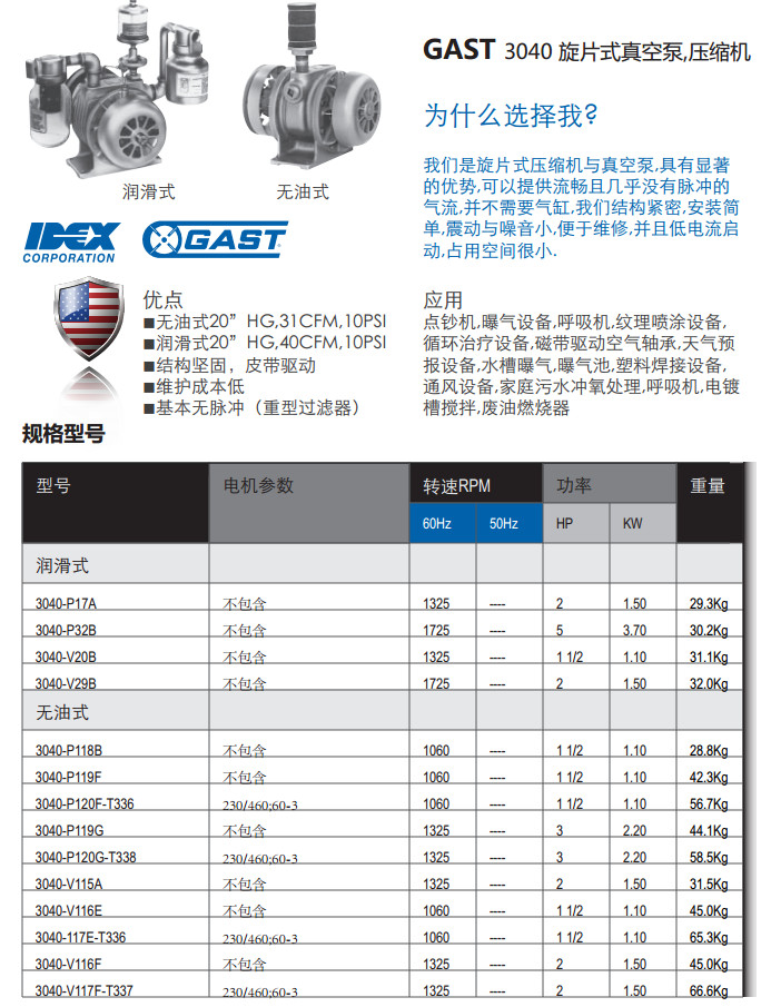 3040-P17A,3040-P32B,3040-V20B,3040-V29B,3040-P118B,旋片式真空泵/压缩机