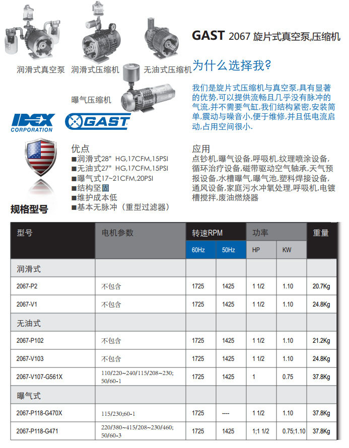 2067-P2,2067-V1,2067-P102,2067-V1032067-V107-G561X,旋片式真空泵/压缩机
