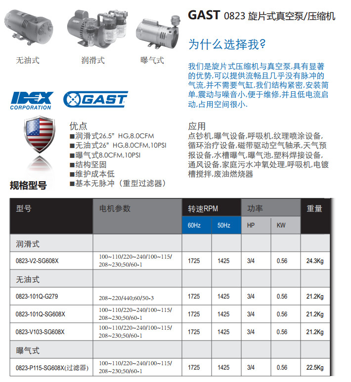 0823-V2-SG608X,0823-101Q-G279,0823-101Q-SG608X,0823-V103-SG608X,旋片式真空泵/压缩机