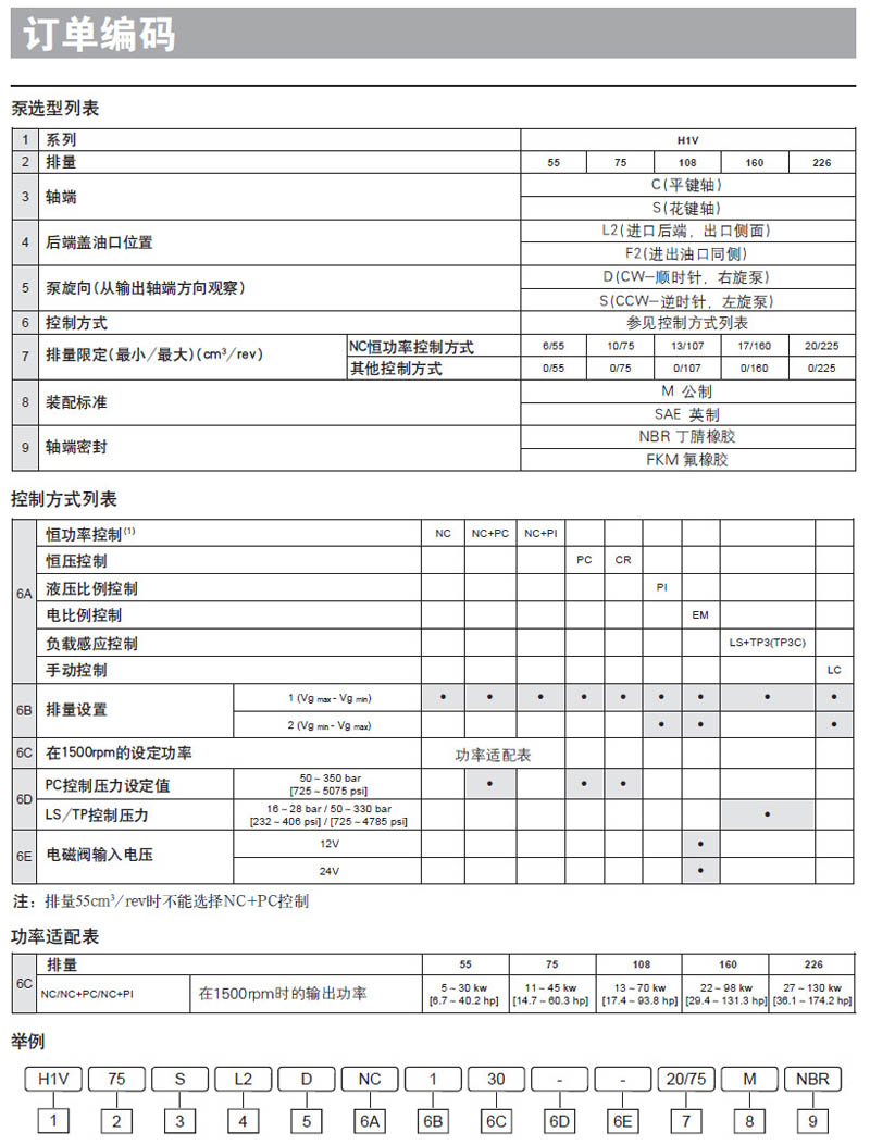 H1V-55-C-L2-D-NC-1,H1V-75,H1V-108,H1V-160,H1V-226,变量泵