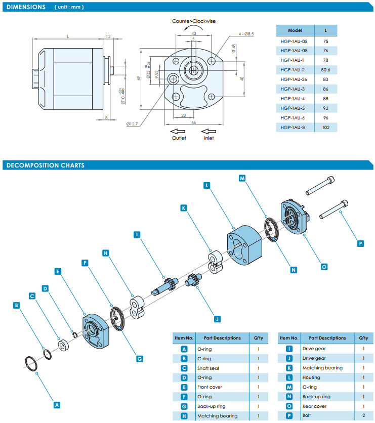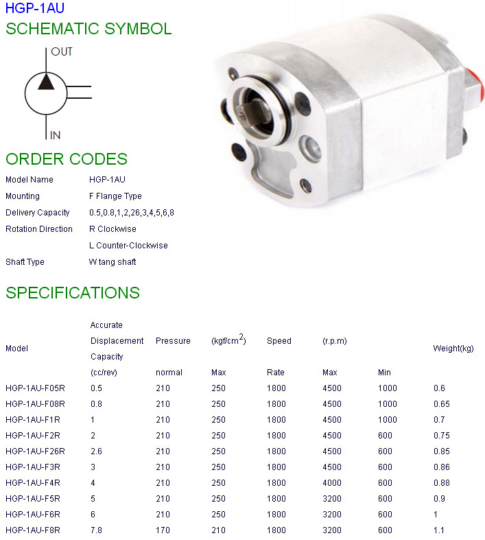 HGP-1AU-F05R,HGP-1AU-F08R,HGP-1AU-F1R,HGP-1AU-F2R,HGP-1AU-F26R,HYDROMAX齿轮泵