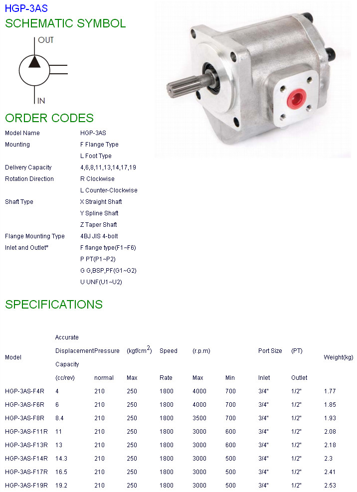 R,HGP-3AS-F6R,HGP-3AS-F8R,HGP-3AS-F11R,HGP-3AS-F13R,HYDROMAX齿轮泵