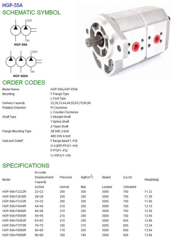HGP-55A-F2222R,HGP-55A-F2626R,HGP-55A-F3333R,HGP-55A-F4444R,HYDROMAX齿轮泵