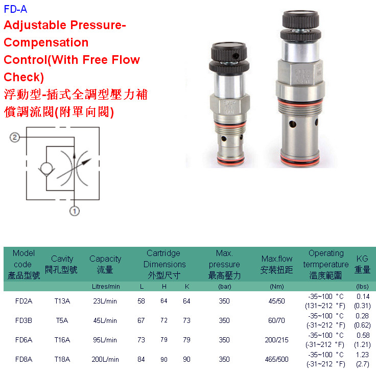 FD2A-T13A-LAN,FD3B-T5A-LAN,FD6A-T16A-LAN,FD8A-T18A-LAN,HYDROMAX插式全調型節流閥