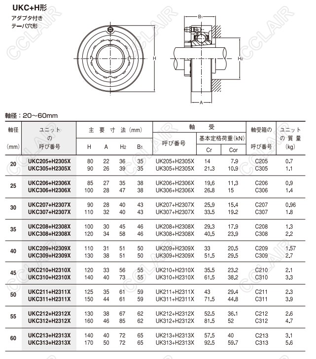 UKC205+H2305X,UKC305+H2305X,UKC206+H2306X,UKC306+H2306X,UKC207+H2307X,UKC+H,轴承