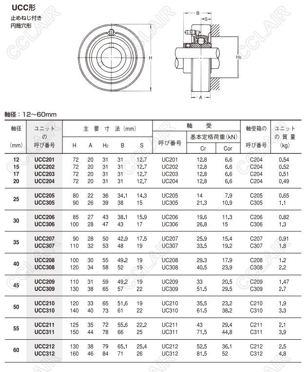 UCC201,UCC202,UCC203,UCC204,UCC205,UCC305,UCC206,UCC306,UCC207,UCC307,UCC,轴承