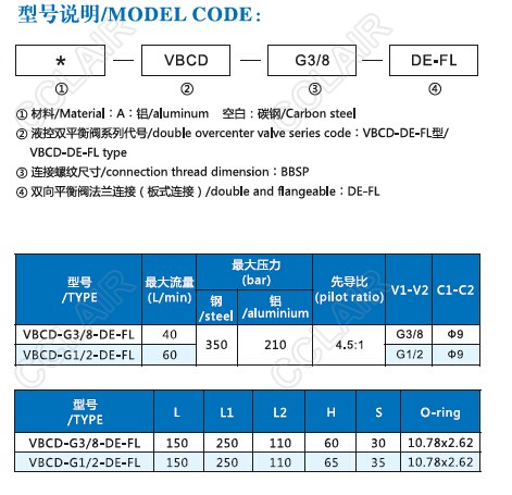 VBCD-G3/8-DEFL,VBCD-G3/8-DE-FL,VBCD-G3/8-DE-FL,VBCD-G1/2-DE-FL,VBCD-DE-FL,双向平衡阀