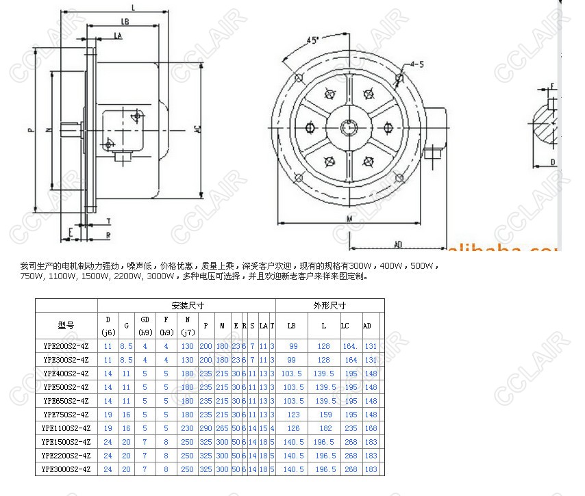 YPE200S2-4Z,YPE300S2-4Z,YPE400S2-4Z,YPE500S2-4Z,YPE3000S2-4Z,盘式制动电机