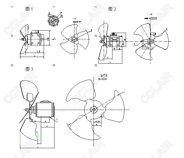 前吹(空气由电动机流向叶轮) |