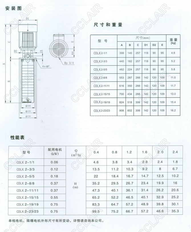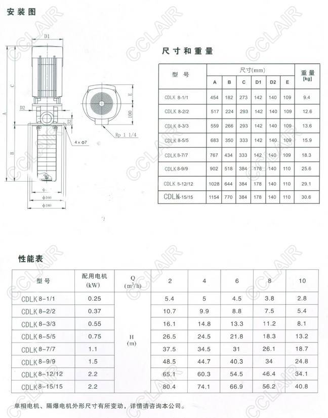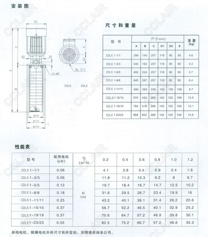 CDLK1-1/1,CDLK1-3/3,CDLK1-5/5,CDLK1-8/8,CDLK1-11/11,CDLK1-15/15,CDLK,浸入式多级离心泵