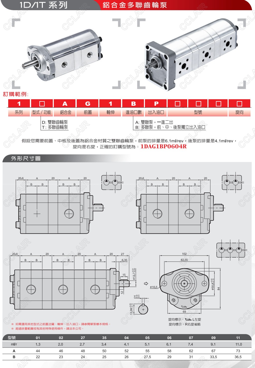 1DAG1AP0201,1DAG1AP2701,1DAG1AP2702,1DAG1AP3501,1TAG1BP270201,1D/1T,铝合金多联齿轮泵