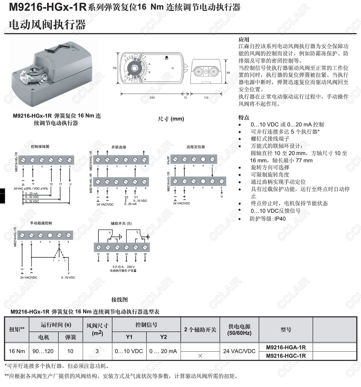 M9216-HGA-1R,M9216-HGC-1R,M9216-HGx-1R,电动风阀执行器