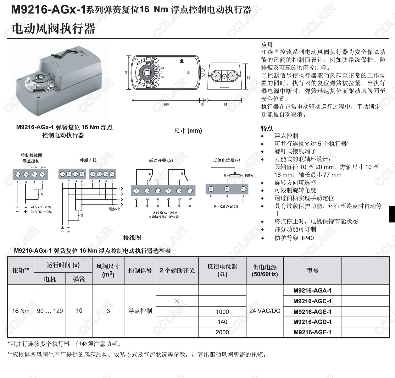 M9216-AGA-1,M9216-AGC-1,M9216-AGE-1,M9216-AGD-1,M9216-AGF-1,M9216-AGx-1,电动风阀执行器