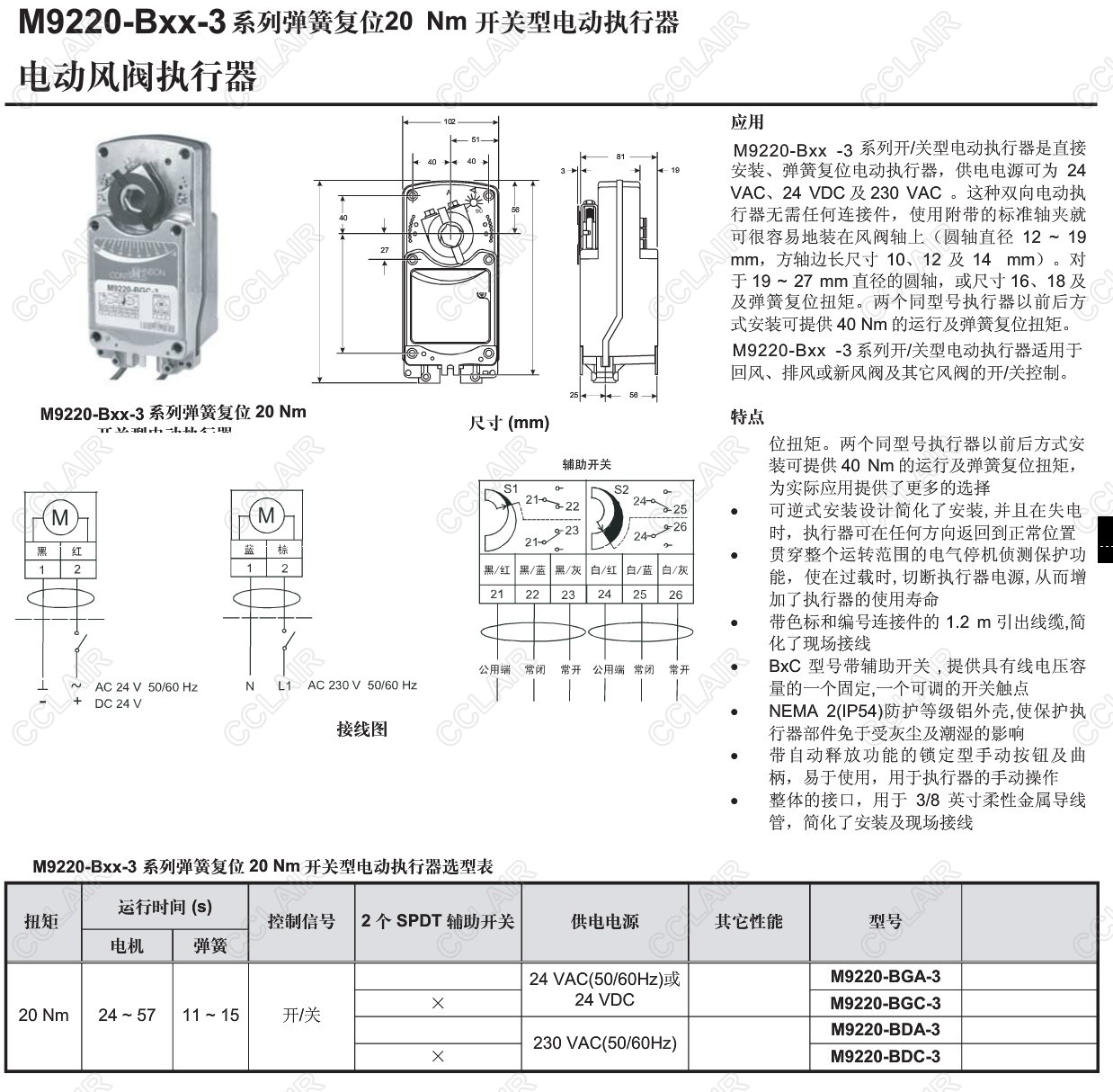 M9220-BGA-3,M9220-BGC-3,M9220-BDA-3,M9220-BDC-3,M9220-Bxx-3,电动风阀执行器