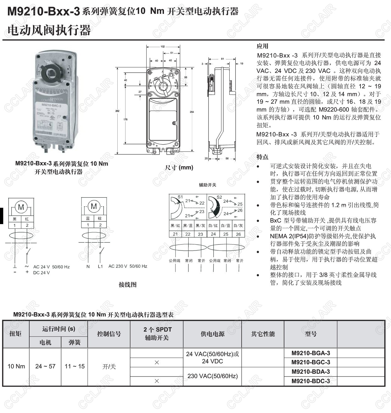 M9210-BGA-3,M9210-BGC-3,M9210-BDA-3,M9210-BDC-3,M9210-Bxx-3,电动风阀执行器