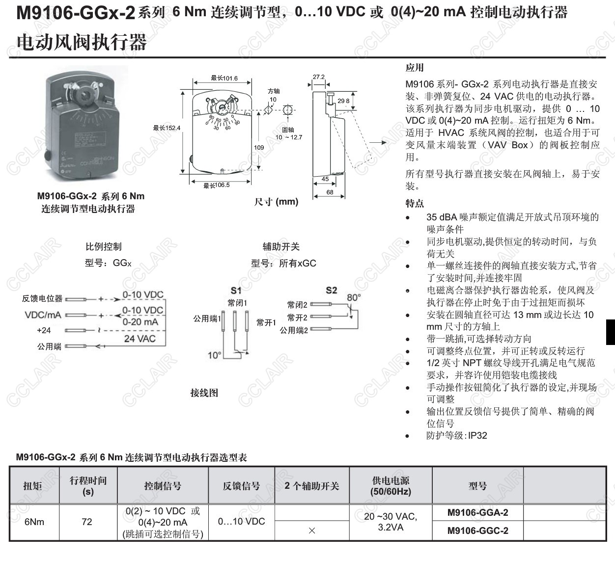 M9106-GGA-2,M9106-GGC-2,M9106-GGx-2,电动风阀执行器