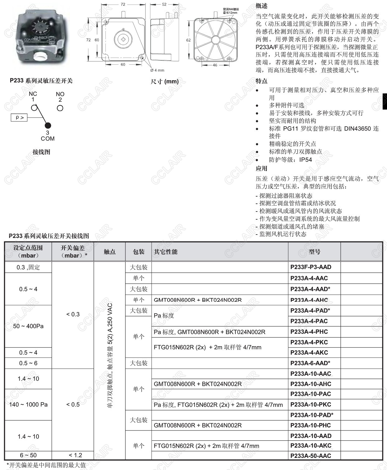 P233F-P3-AAD,P233A-4-AAC,P233A-4-AAD,P233A-4-AHC,P233A-4-PAD,P233,灵敏压差开关