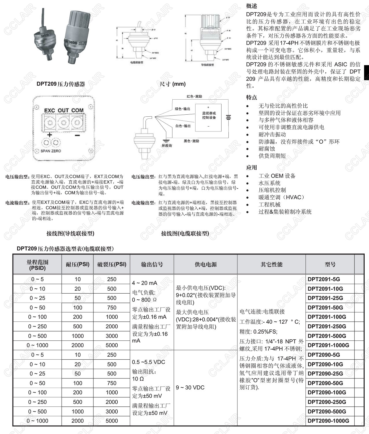 DPT2091-5G,DPT2091-10G,DPT2091-25G,DPT2091-50G,DPT2091-100G,DPT209,压力传感器