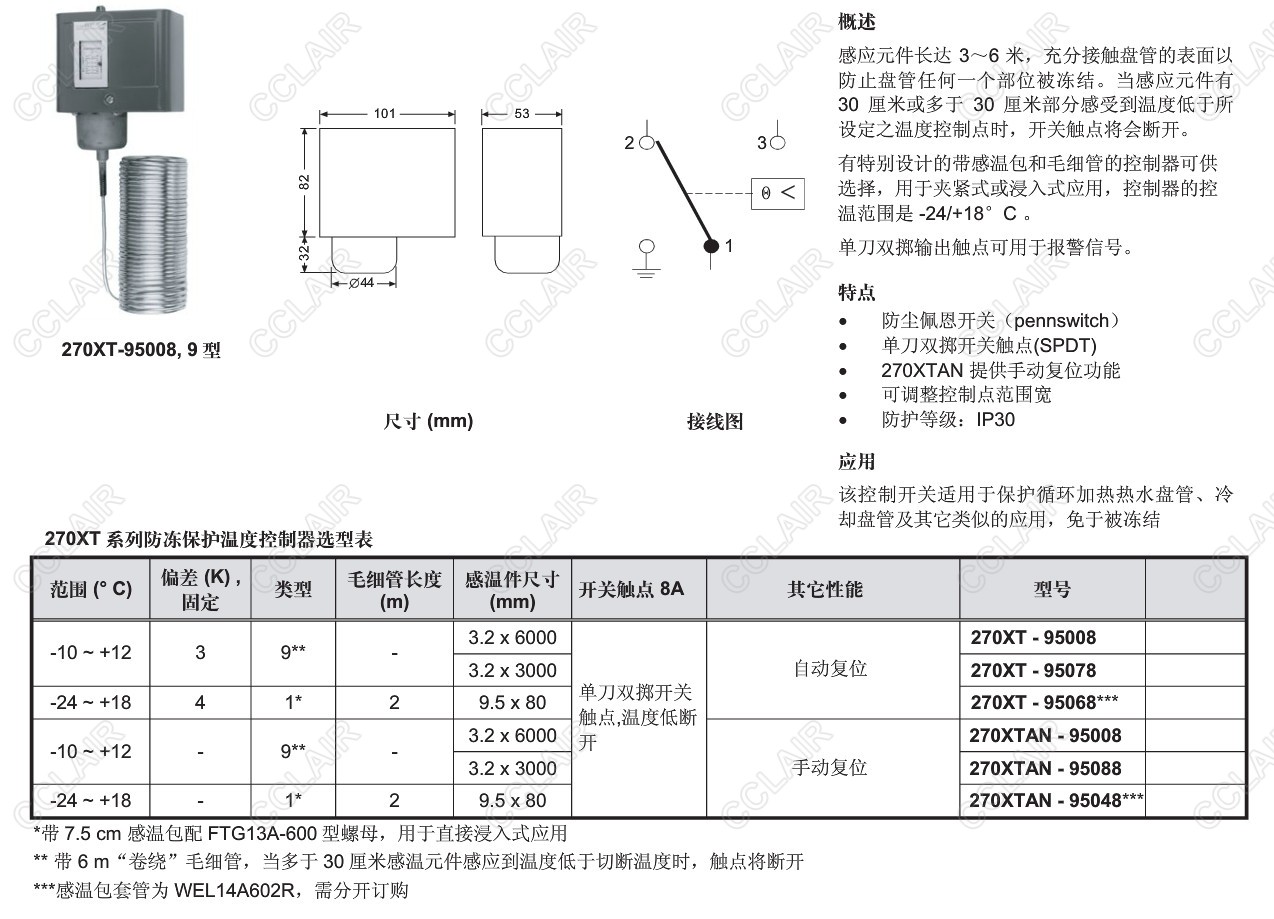 270XT-95008,270XT-95078,270XT-95068,270XTAN-95008,270XTAN-95088,270XT,防冻保护温度控制器