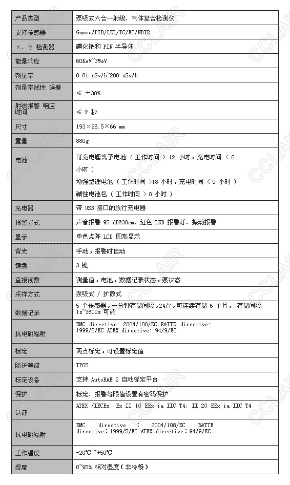 • 对χ、γ 射线小于2 秒的报警反应时间