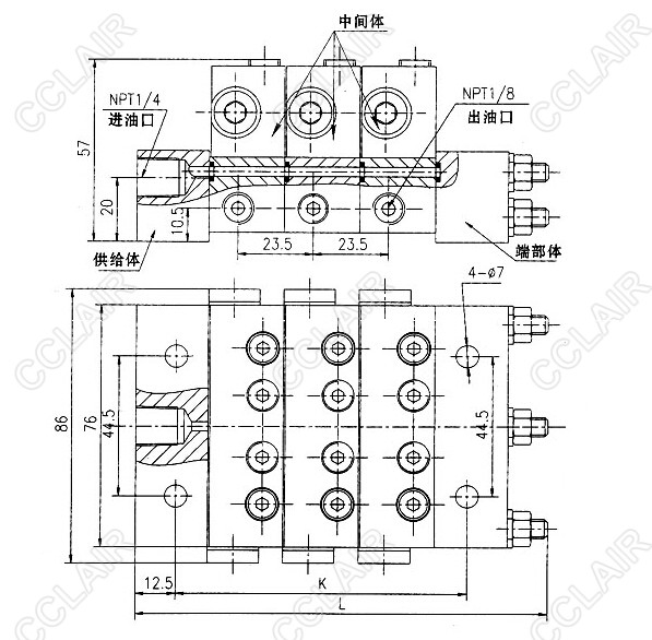 LC:没有左出口,从进油方向看左侧出口与邻接的后一片出口合并油量。