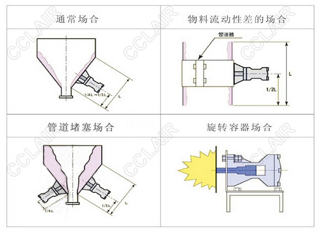 ◎通过压缩空气为动力,瞬间释放,推动内部的锤头打击底部,将强力冲力传递给料斗壁面,有效地击破物料所构成的拱桥,使积料松动,达到卸灰顺畅的目的。
