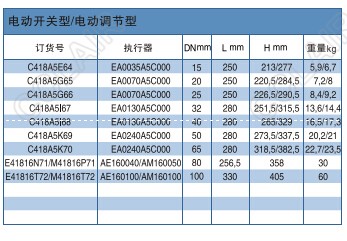 C418A5E64,C418A5G65,C418A5G66,C418A5K69,C418A5K70,418型电动开关/电动调节球阀OMAL