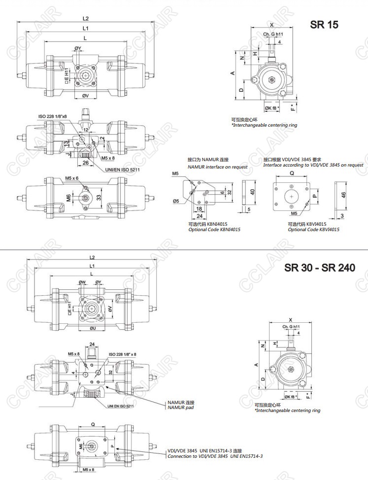从SR30起可直接与NAMUR标准的电磁阀连接。