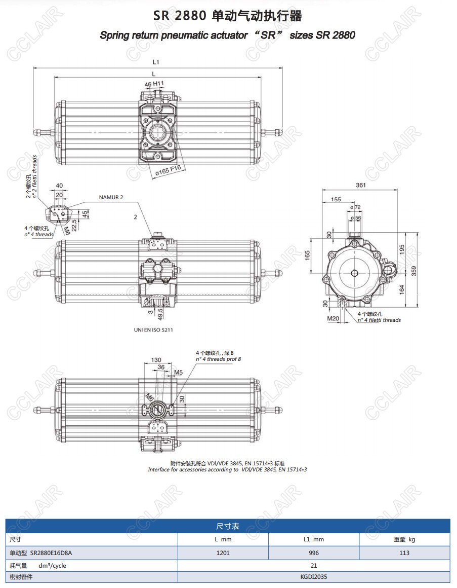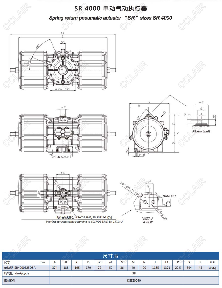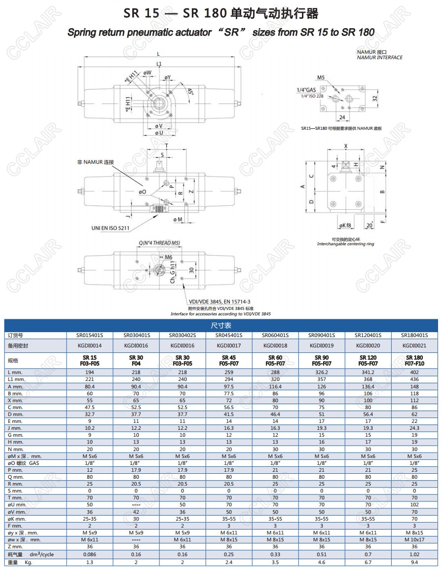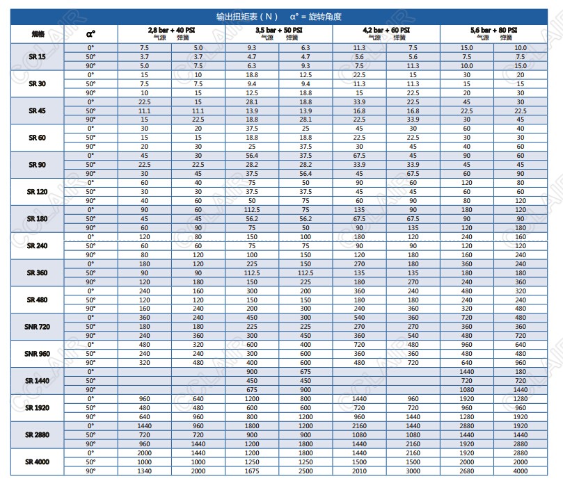 字母DA或SR后的数字代码表示在5.6bar气源压力下的扭矩。