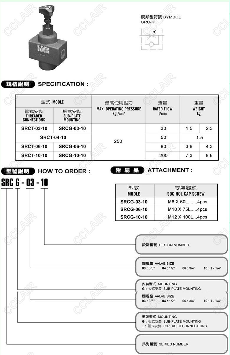 SRCT-03-10,SRCT-04-10,SRCT-06-10,SRCG-03-10,SRCG-10-10,单向节流阀JEOU GANG