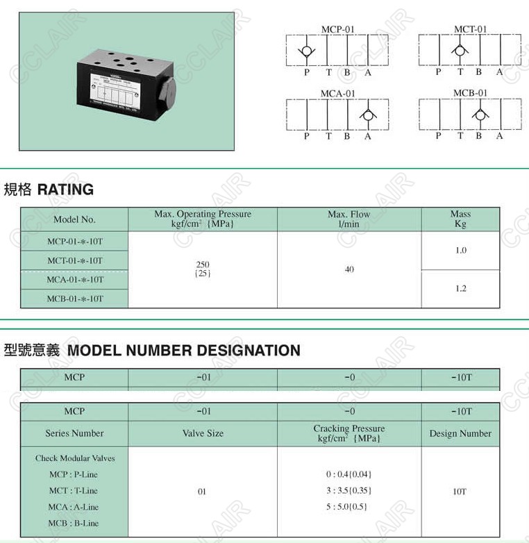MCA-01-3,叠加式单向阀YUKEN