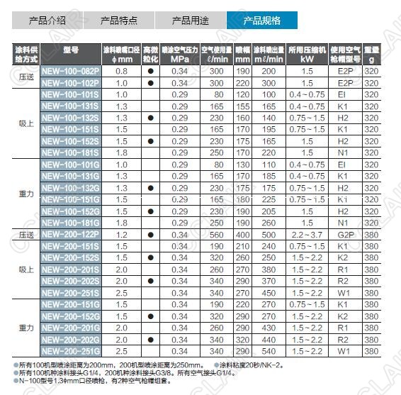 NEW-100-082P,NEW-100-131S,NEW-100-152G,NEW-200-251G,NEW-100/200小型、大型喷枪