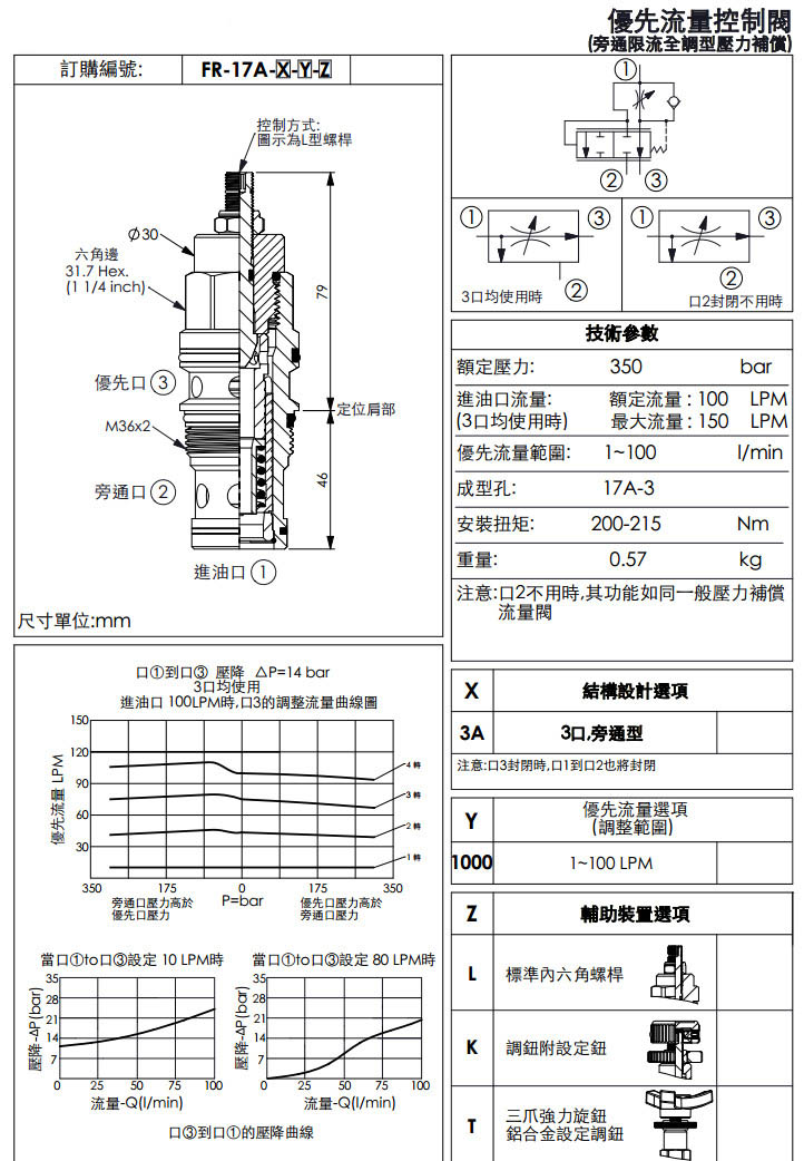 FR-17A-3A-1000-L,FR-17A-3A-1000-K,FR-17A-3A-1000-T,winner优先流量控制閥
