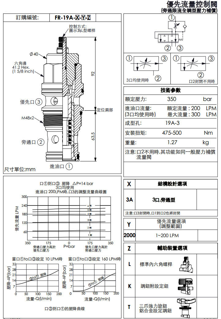FR-19A-3A-2000-L,FR-19A-3A-2000-K,FR-19A-3A-2000-T,winner优先流量控制閥