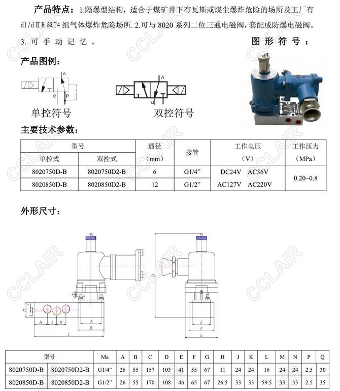 8020750D-B,8020850D-B,8020750D2-B,8020850D2-B,防爆电磁阀