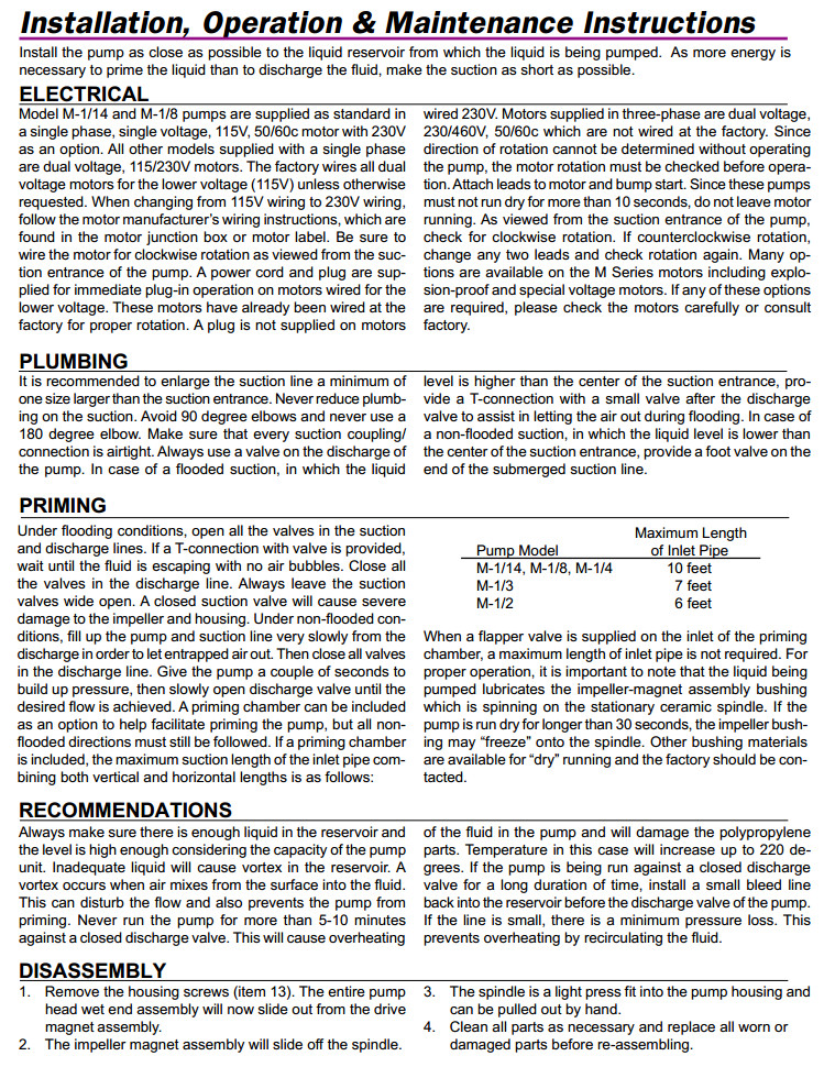 M-1/14,M-1/8,M-1/4,M-1/3,M-1/2,M-3/4,M-2,M-3,M-10,PENGUIN磁力驱动泵