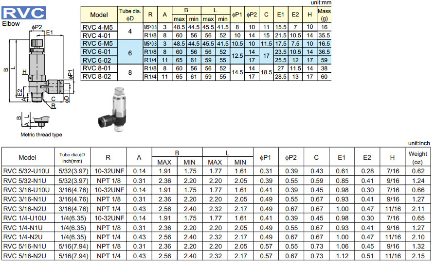 RVC4-01,RVC6-01,RVC6-02,RVC8-02,RVC5/32-U10U,RVC3/16-U10U,RVC3/16-N1U,RVC1/4-U10U,